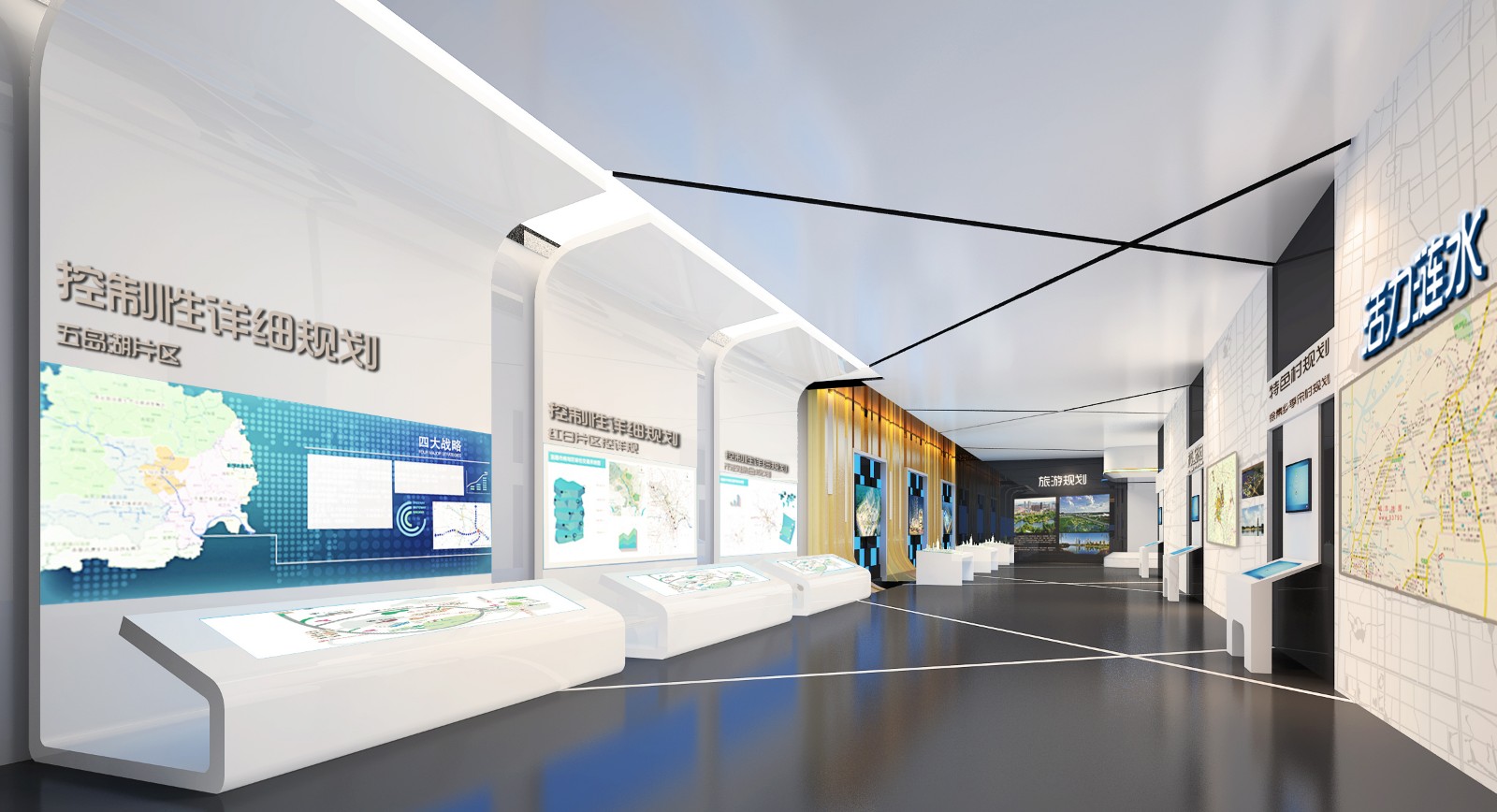 二樓規劃區 二樓規劃區分別展示漣水縣總體規劃中心城區控制性詳細規劃、專項規劃、鄉鎮規劃、旅游規劃等具體的規劃內容,詳細介紹漣水縣規劃內容,展望漣水縣在科學規劃下的美好前景。