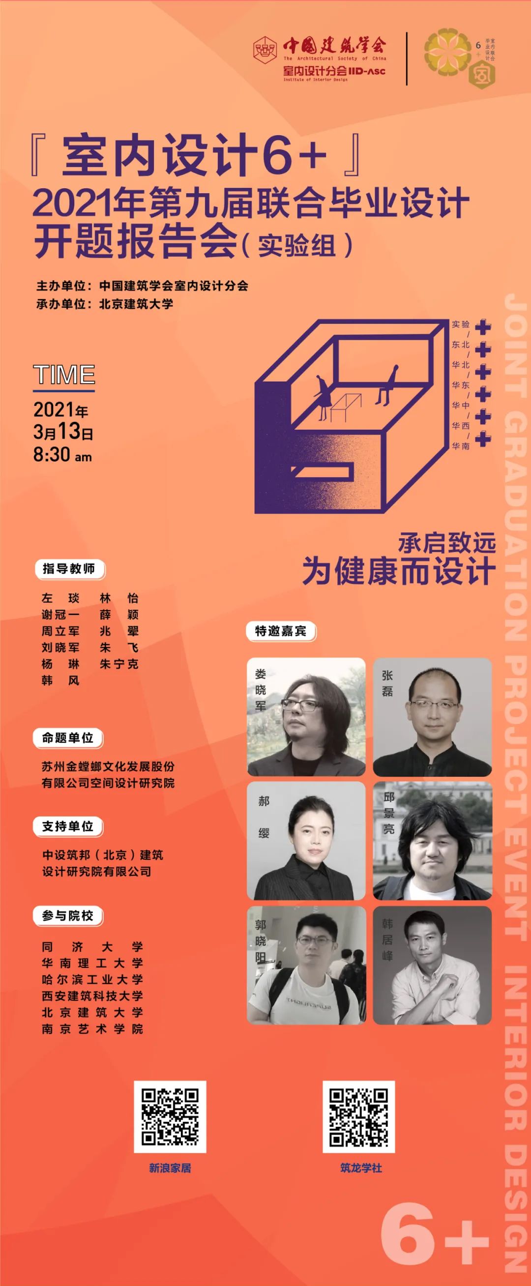 3月13日,由中國建筑學會室內設計分會主辦的室內設計6+”2021年第九屆聯合畢業設計(實驗組)開題報告會順利舉行。實驗組高校、行業知名企業、特邀嘉賓共同參與線上會議,共計13萬人次參加。 本屆聯合畢業設計(實驗組)主題是“為健康而設計——建筑健康環境設計”,由蘇州金螳螂文化發展股份有限公司空間設計研究院總命題。 室內設計6+”2021年第九屆聯合畢業設計 (實驗組)開題報告會 主辦單位: 中國建筑學會室內設計分會 承辦單位: 北京建筑大學 命題單位: 蘇州金螳螂文化發展股份有限公司空間設計研究院 支持單位: 中設筑邦(北京)建筑設計研究院有限公司 參加高校: 同濟大學 華南理工大學 西安建筑科技大學 北京建筑大學 南京藝術學院 哈爾濱工業大學 浙江工業大學 特邀嘉賓 蘇 丹(中國建筑學會室內設計分會 理事長、清華大學藝術博物館 副館長、清華大學美術學院教授) 陳靜勇(中國建筑學會室內設計分會 副理事長、北京建筑大學教授、“室內設計6+”聯合畢業設計項目總負責人) 周立軍(中國建筑學會室內設計分會 副理事長、哈爾濱工業大學教授) 陳 亮(中國建筑學會室內設計分會 秘書長、中國中元國際工程有限公司環藝院院長) 婁曉軍(蘇州金螳螂文化發展股份有限公司空間設計研究院院長) 張磊(中國建筑學會室內設計分會 理事、中設筑邦(北京)建筑設計研究院副院長) 郝纓(中國建筑西北設計研究院環藝院總建筑師) 邱景亮(天津大學建筑學院環境設計系主任,教授) 郭曉陽(蘇州科技大學建筑與城市規劃學院教授,“室內設計6+”聯合畢業設計華東區聯系人) 韓居峰(北京僑信裝飾工程有限公司 環藝院院長) 劉偉震(中國建筑學會室內設計分會“室內設計6+”聯合畢業設計聯系人) 指導教師 同濟大學:左琰 教授,林怡 副教授 華南理工大學:謝冠一 副教授,薛穎 副教授 哈爾濱工業大學:周立軍 教授, 兆翚 副教授 西安建筑科技大學:劉曉軍 副教授 北京建筑大學:楊琳 副教授, 朱寧克 講師,韓風 講師 南京藝術學院:朱飛 教授 浙江工業大學:呂勤智 教授 精彩回顧 會議伊始,特邀嘉賓發表致辭。中國建筑學會室內設計分會理事長、清華大學藝術博物館副館長、清華大學美術學院教授蘇丹對活動的舉辦表示祝賀,肯定了行業領先企業參與項目所產生的推動作用。蘇教授認為,“為健康而設計”是一個非常應景的題目,在深受疫情影響的當下,引導學生老師思考與交流室內設計更多更豐富的解決方案。 金螳螂文化空間設計研究院院長婁曉軍表示,金螳螂文化很榮幸能作為總命題單位參與此次項目,希望通過這樣與高校的專業教育緊密合作的機會,跟各位教授老師交流,同時提供我們力所能及的幫助,為中國的設計教育事業盡一份力。 隨著互聯網的高速發展和疫情的影響,人們的行為方式發生了很大的變化。設計師面對這些變化,如何用專業和創意解決面臨的健康問題,這是我們這次命題的主要目的。希望同學們通過前期調研充分理解題目,在最后的畢業設計中取得良好的成果。 各校分別進行了開題報告匯報,內容為:南京水佐崗社區中心健康環境設計、南京江南銀元鑄造制錢總局廠房改造健康環境設計、北京中國院6#樓健康環境設計、西安新城區“兩館”室內健康環境設計。 會議最后開展了開題匯報會互動,在互相交流分享的熱烈氛圍中,室內設計6+”2021年第九屆聯合畢業設計(實驗組)開題報告會順利結束。 關 于 6 + “室內設計6+”聯合畢業設計作為由中國建筑學會指導,中國建筑學會室內設計分會主辦的品牌設計教育創新項目,是一個聯合全國多所高校、結合設計企業實際項目的綜合畢業設計活動。 “室內設計 6+”項目分為實驗核心組、東北地區、華北地區、華東地區、華西地區、華中地區、華南地區七個組別,聯合建筑學和環境設計類專業高等教育資源充分的省市相關院校、設計企業和相關單位,進一步加強室內設計師特色創新人才的培養,促進全國設計教育及室內設計行業的發展。 “室內設計 6+”聯合畢業設計
